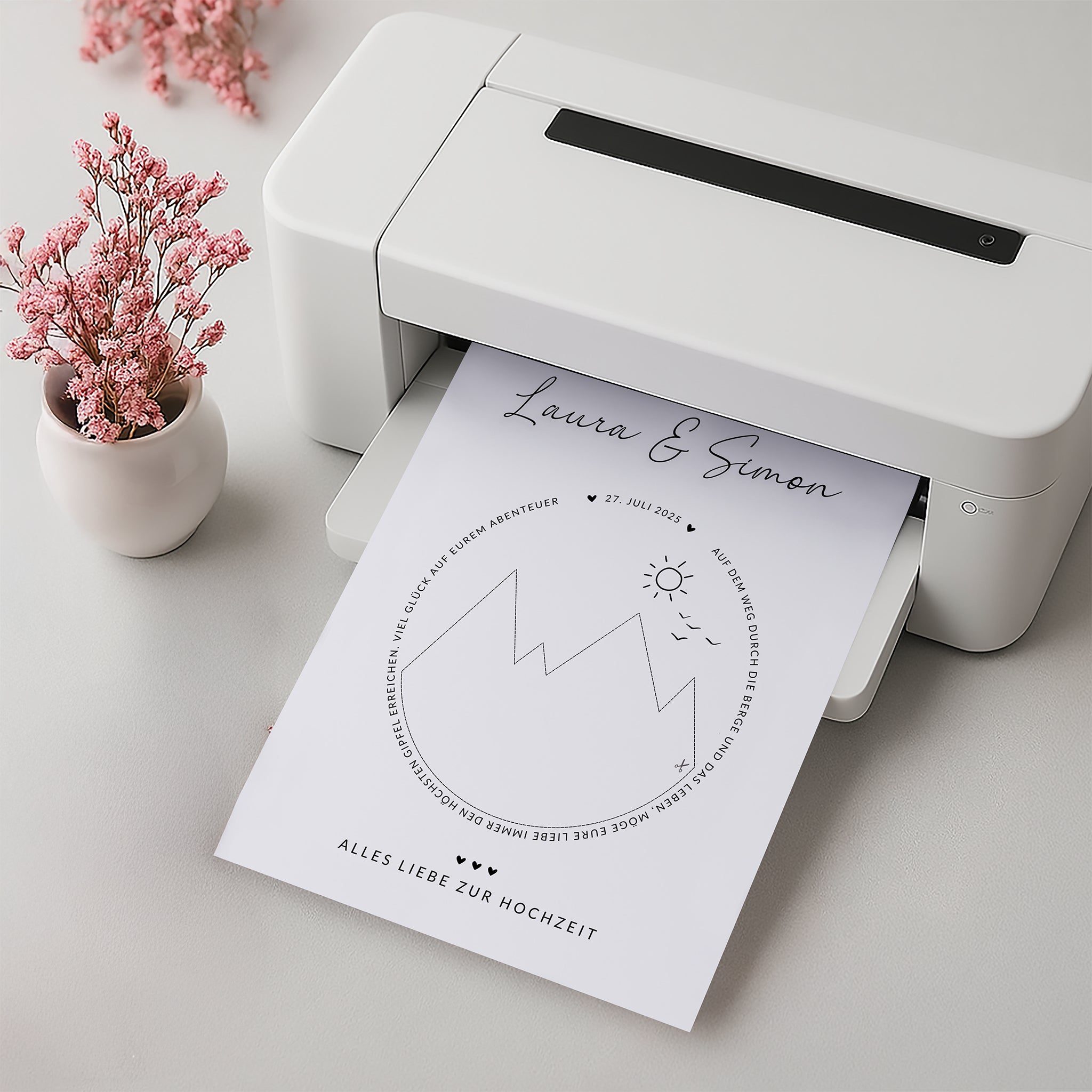 „Auf dem Weg durch die Berge und das Leben, möge eure Liebe immer den höchsten Gipfel erreichen. Viel Glück auf eurem Abenteuer“