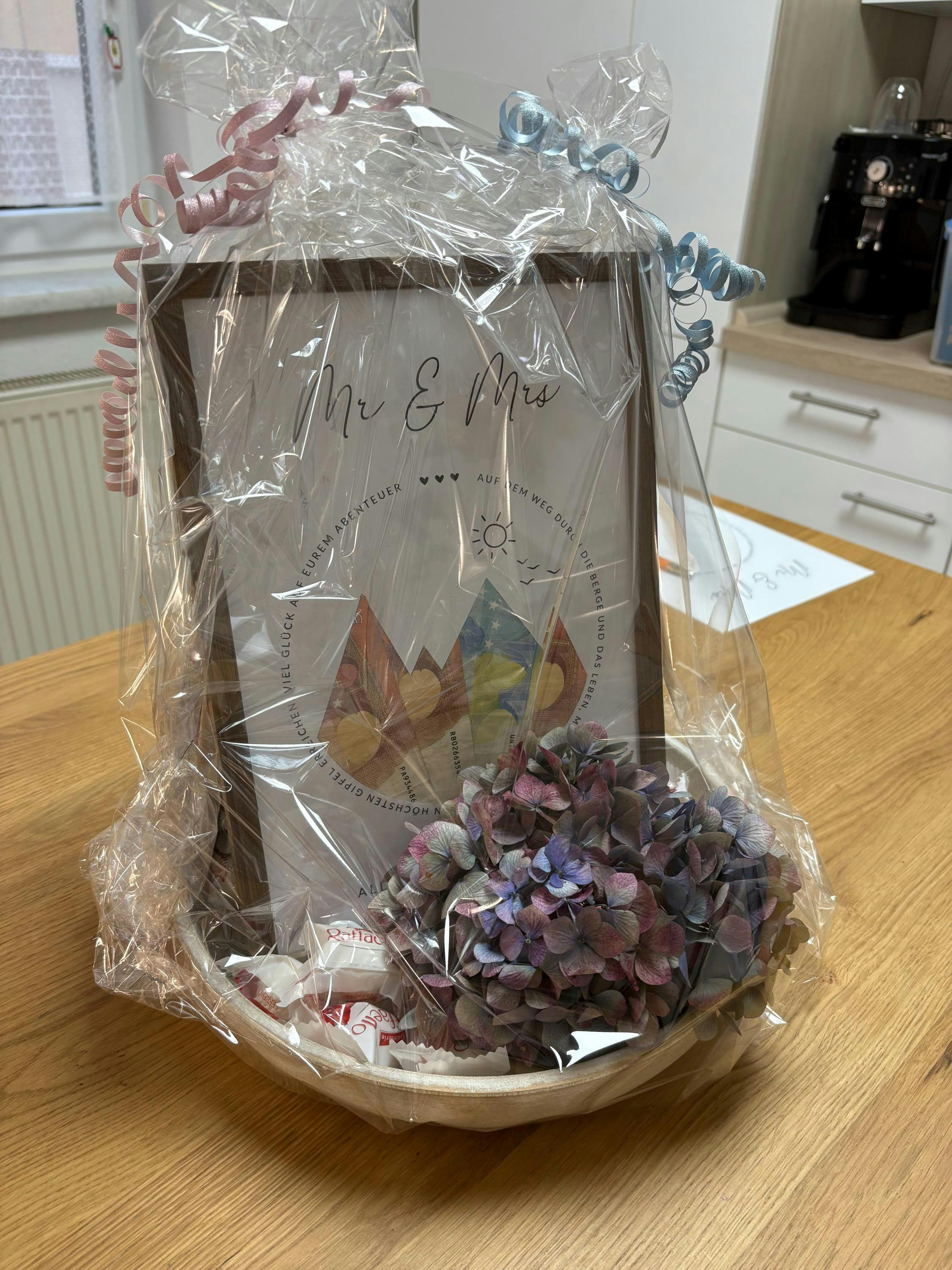 Dieses besonders liebevoll gestaltete Geldgeschenk zur Hochzeit lässt die Herzen von Brautpaaren, die ihre Liebe zu den Bergen teilen, höher schlagen.