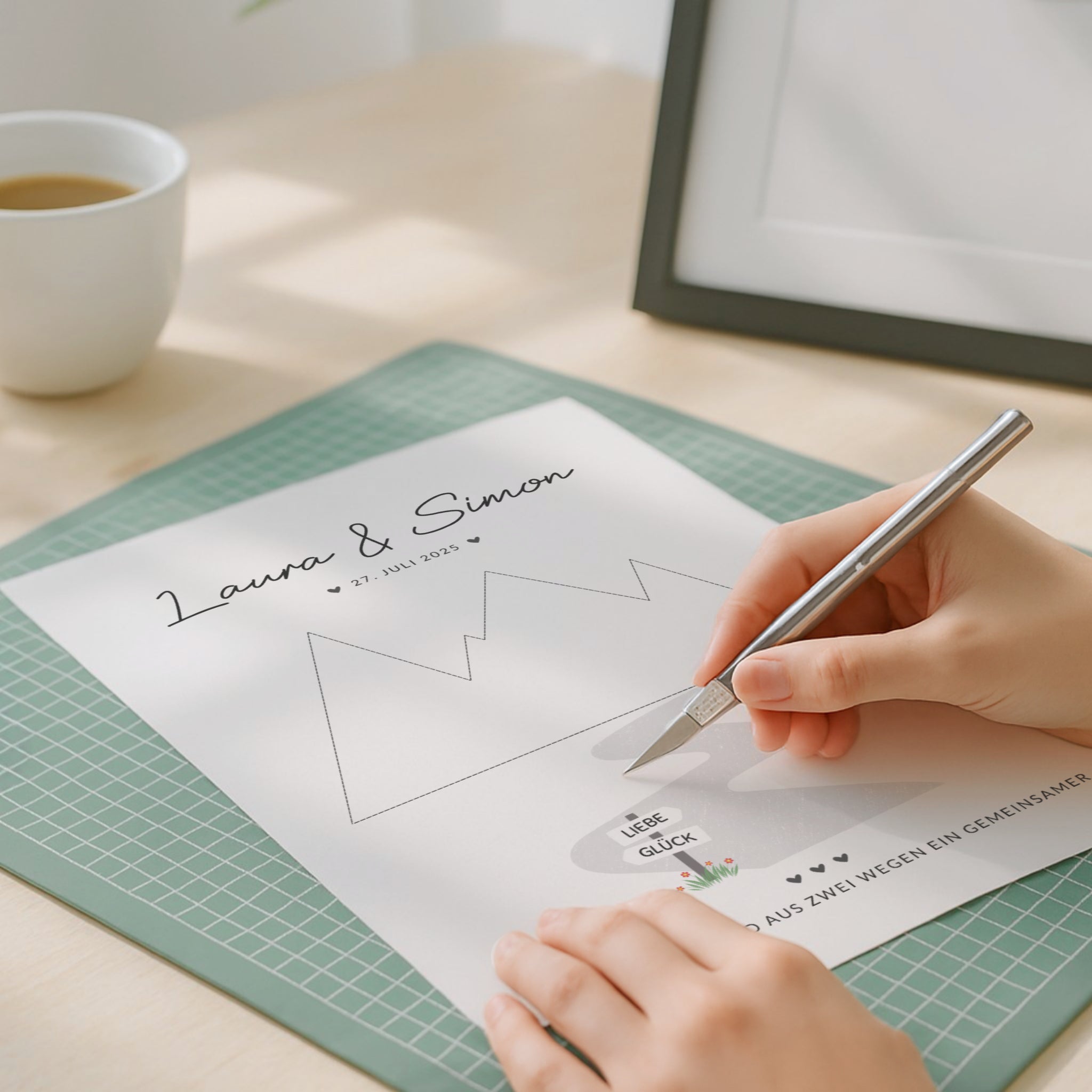 Zu einem ganz besonderen Highlight wird dein Geschenk, wenn du es anschließend einrahmst. Das verleiht deinem Geschenk eine besonders wertige Optik und macht es zu einem bleibenden Deko-Element.