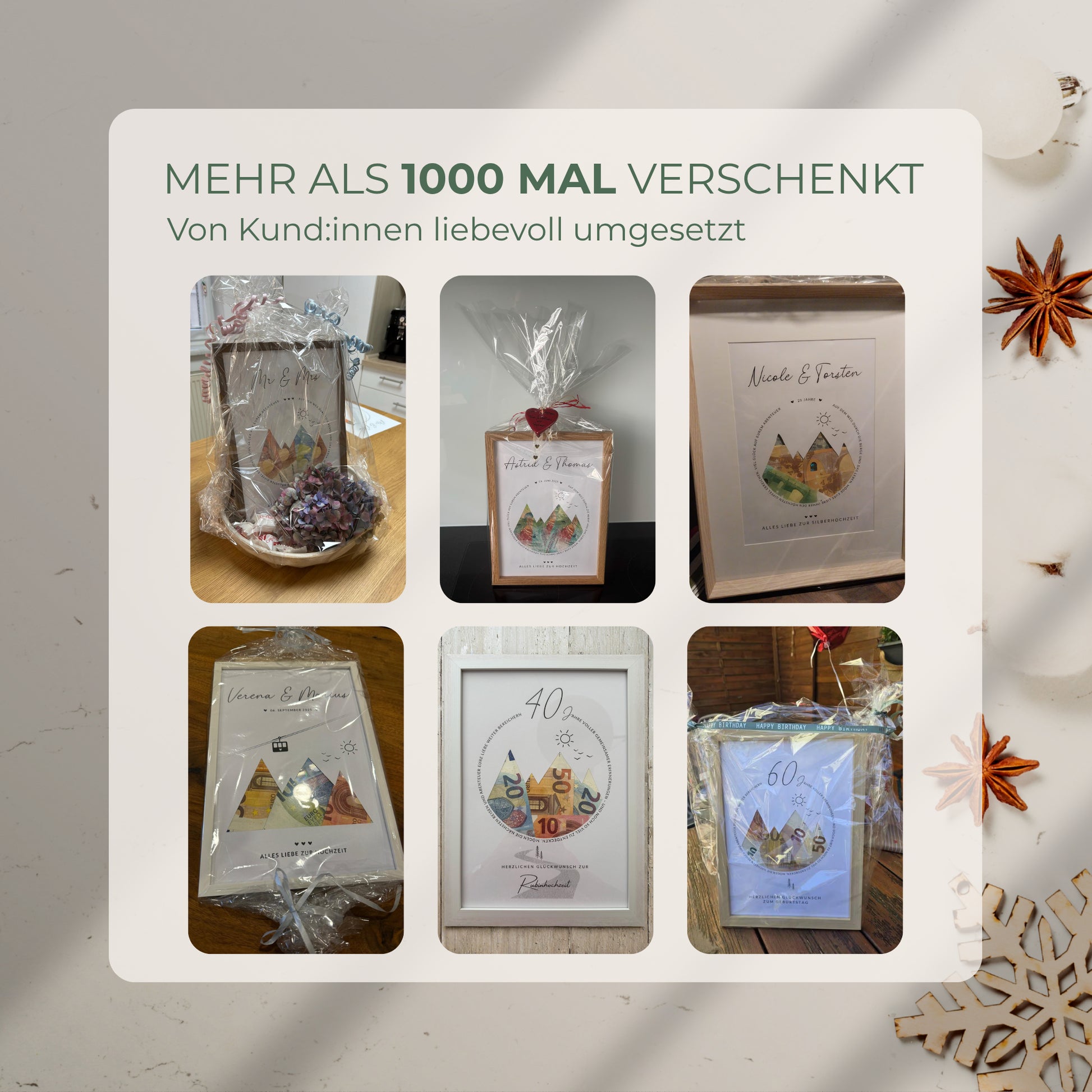 Zu einem ganz besonderen Highlight wird dein Geschenk, wenn du es anschließend einrahmst. Das macht aus dem Geldgeschenk ein liebevolles Deko-Element – und eine Erinnerung, die bleibt.