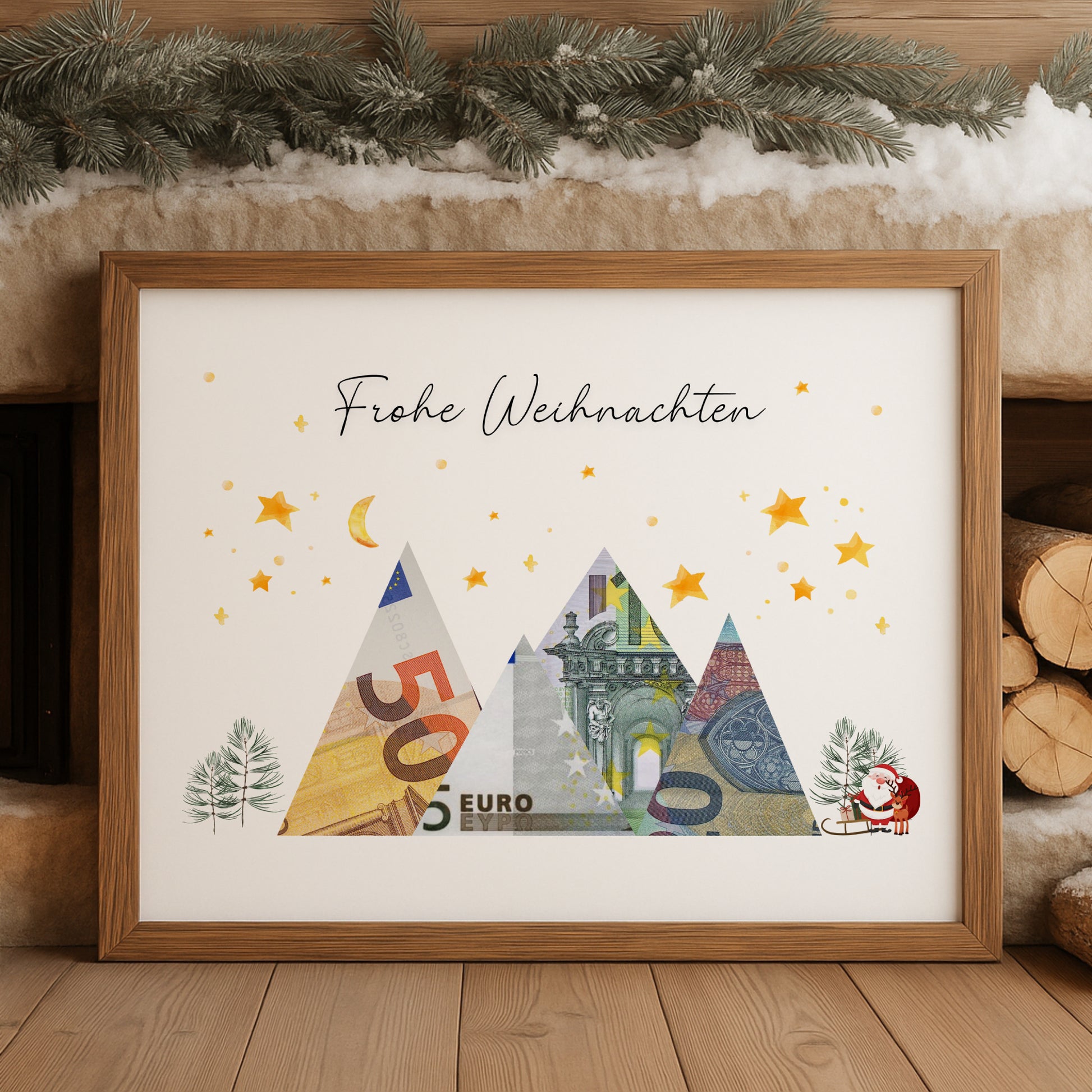 Schluss mit langweiligen Geldumschlägen unter dem Weihnachtsbaum! Du möchtest dieses Jahr Geld verschenken, aber auf eine Art, die wirklich begeistert und nicht unpersönlich wirkt? Die stilvolle Geldgeschenk-Vorlage "Frohe Weihnachten" ist die perfekte Lösung für dein besonderes Weihnachtsgeschenk, vor allem als Last-Minute Idee.